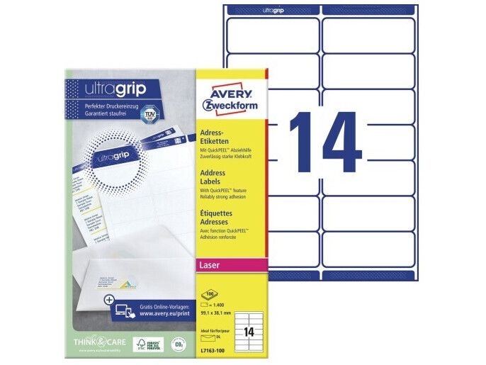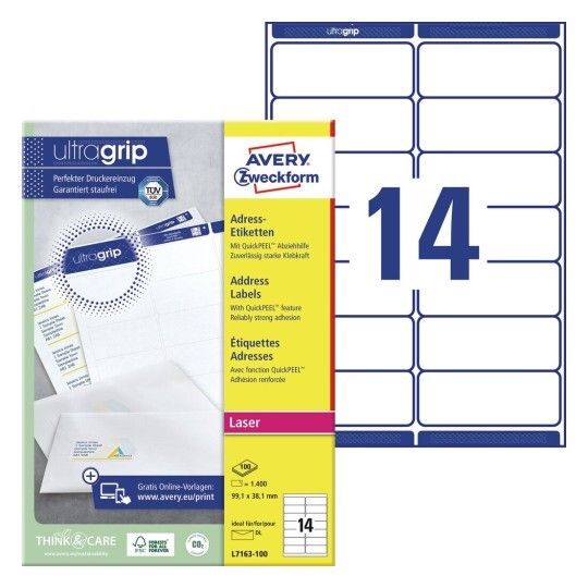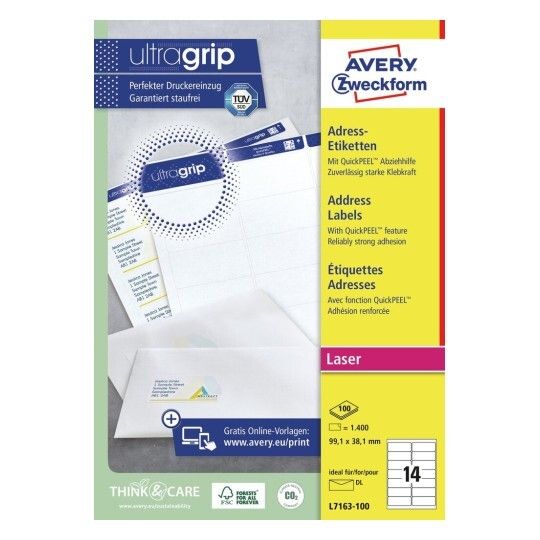 | • QuickPEEL™ funktion for nem aftagning og påsætning • Med Ultragrip for præcis udskrivning uden papirstop • Velegnet til M65 konvolutter • FSC® certificerede • Design og print nemt med GRATIS skabeloner |