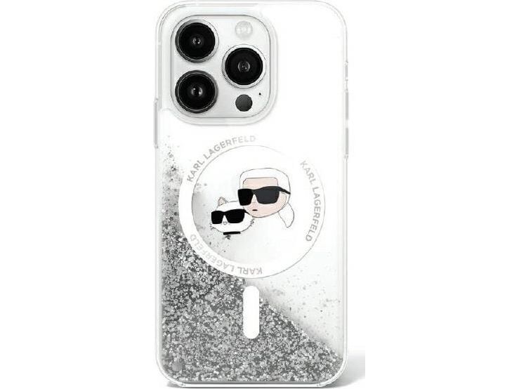 Karl Lagerfeld Liquid Glitter Karl & Choupette Head Magsafe Apple iPhone 16 Pro-deksel - telefondeksel gjennomsiktig