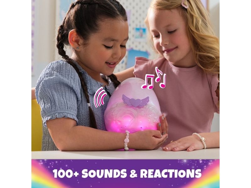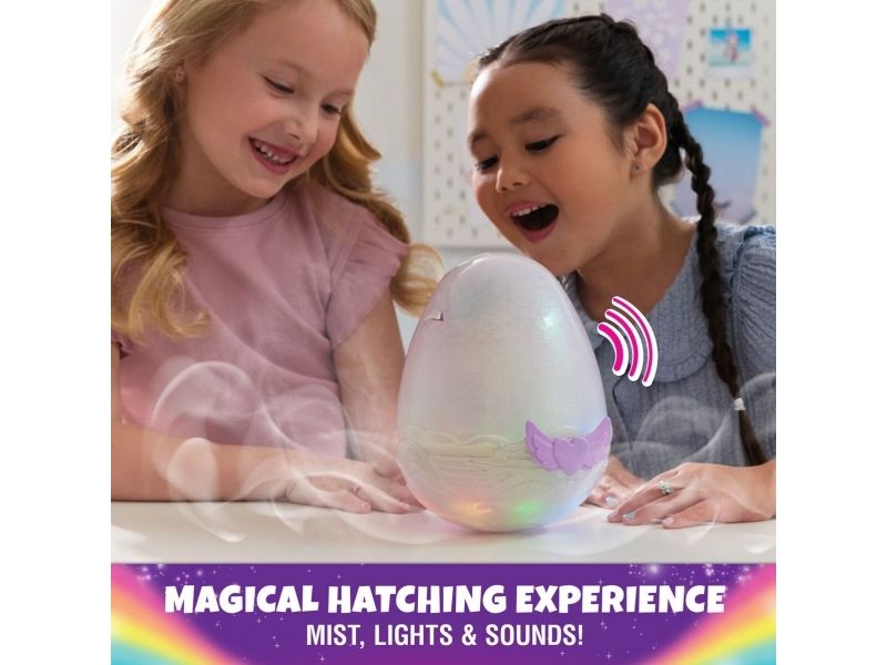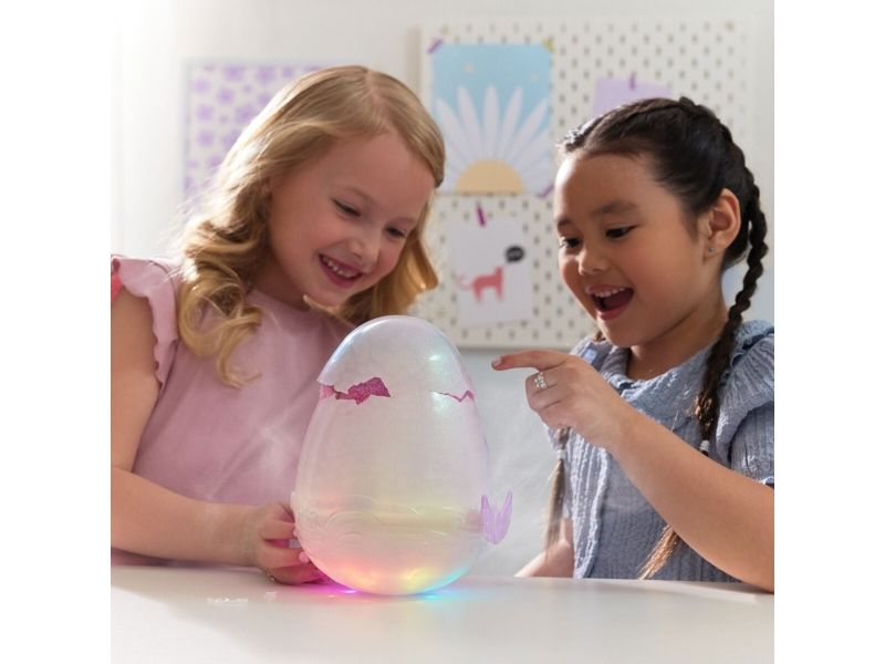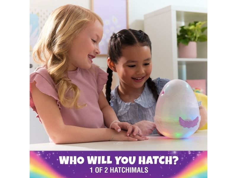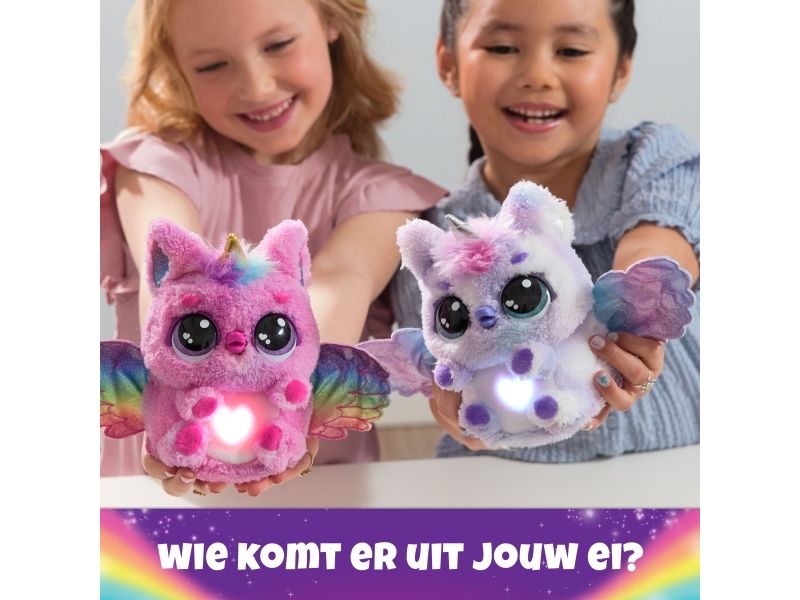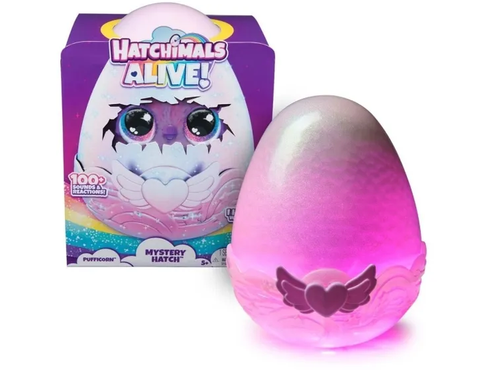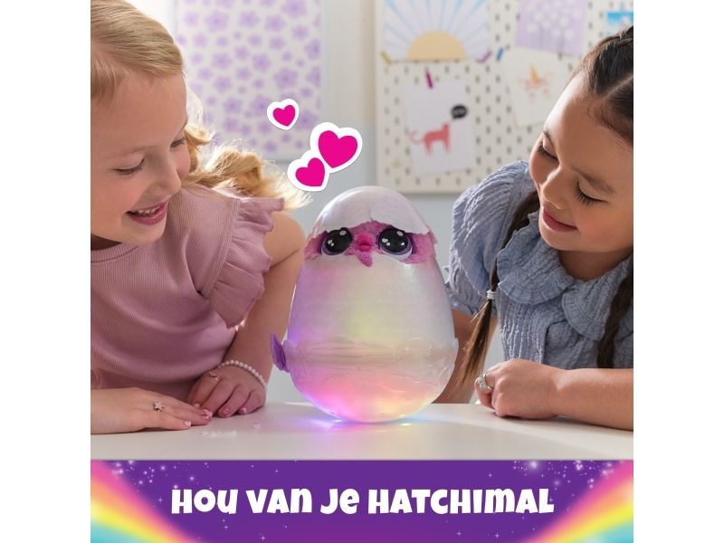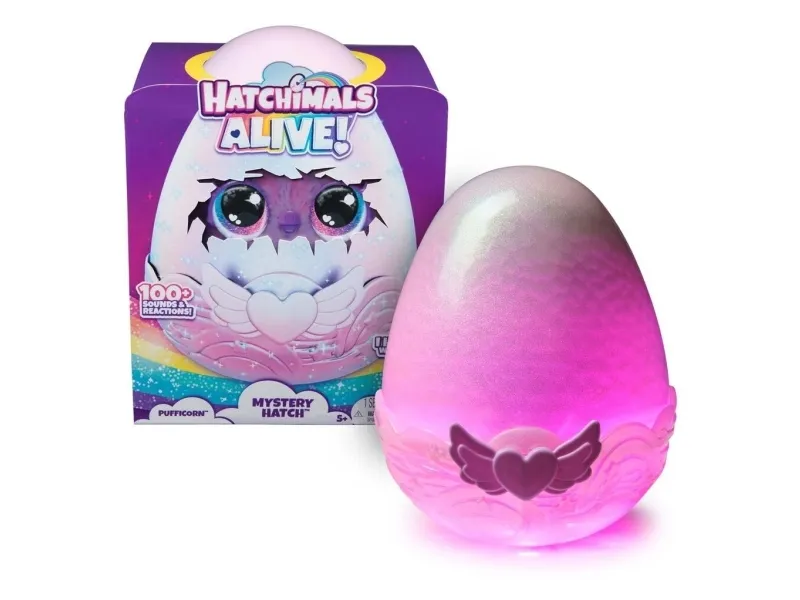 Noe magisk er på vei: Hatchimals Alive Mystery Hatch, og de trenger din kjærlighet for å klekkes. Med en spennende klekkeopplevelse med tåke, lys og over 100 lyder og reaksjoner er disse Hatchimals et must-have. Hvem vil du klekke ut? Det er en overraskelse. Inni hvert Mystery Hatch Hatchimals-egg er det én av to figurer. Klem, trykk, løft og vipp egget for å oppmuntre figuren din til å klekkes - egget vil lyse opp og vippe, og du vil til og med høre Hatchimals reagere fra innsiden. Når egget ditt har fått nok kjærlighet, kan du samle familie og venner og forberede deg på den ultimate klekkeopplevelsen. Magisk tåke vil dukke opp, og egget vil gløde i regnbuefarger, noe som bygger opp spenningen. Etter klekking vil din nye Mystery Hatch-venn inspirere til fantasifull lek. De som elsker overraskelsesleker, elektroniske kjæledyr, actionfigurer, dukker og dukkehus, vil elske Hatchimals Alive Mystery Hatch. En minneverdig bursdagsgave, festgave eller gave til enhver anledning. Inkluderer 4 AA-batterier. Gi liv til ditt eget Hatchimal med Hatchimals Alive Mystery Hatch. Fra 5 år og oppover. Batterier (4xLR6-AA) medfølger.