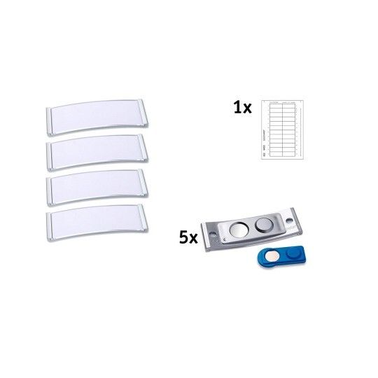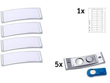 Navneskilt Badgepoint® 68x22 mm, Polar® Classic 20 Medarbejderskiltesæt, skilte med rustfri stålramme, akrylglas og printbare indstik - 5 skilte inkl. 24 indstik