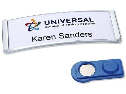 Med vores eksklusive navneskilte-sæt er du takket være selv-mærkning 100% fleksibelt og har alt, hvad du skal bruge til øjeblikkelig indsats eller spontane genfremstillinger: Navneskilte inkl. kraftig-fastgørelse smag® og tilsvarende navneskilte til dit individuelle skrift. Designet-navneskiltet gør sig til en perfekt allrounder med høj bærekomfort og forhindrer, at skiltet vælter. Uanset om det er som dagligt udformet skilt på tøjet på dine medarbejdere eller som navneskilt på messer og events, denne fleksible model kan altid tilpasses ved hjælp af hurtigt udskiftelige navneskilte.