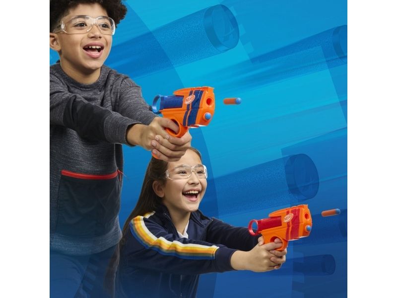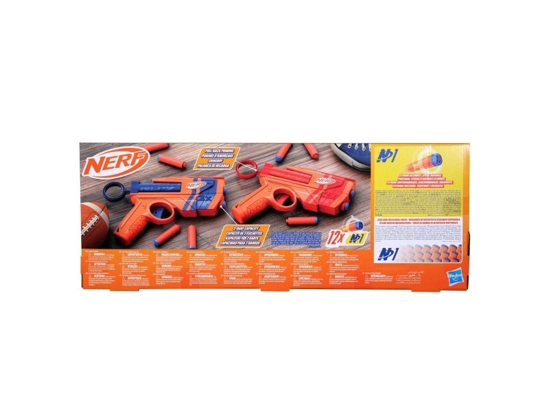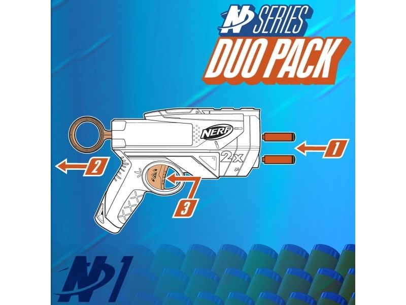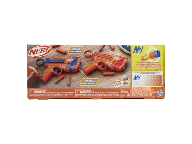 The Nerf brand levels up your game with high-performance Nerf N Series dart blasters and Nerf N1 darts! You have the skills as a Nerf battler, now you have the blasters and darts to gain a superior edge in indoor and outdoor play. From the creators of the foam dart, the Nerf brand unleashes the next evolution in foam dart blasting with Nerf N Series N1 darts, delivering EXTREME ACCURACY, SPEED, and DISTANCE! The Nerf N Series Duo Pack includes 2 blasters for double the dart-firing fun! The compact blasters are perfect for when you're moving quickly and need to act fast in Nerf battles. They have 2-dart capacity, pull-back priming, and a tactical rail. The Nerf N Series Duo Pack includes 12 Nerf N1 foam darts, giving you additional darts for reloads. Nerf N Series blasters are compatible only with Nerf N1 darts.. Eyewear recommended (not included).NERF and HASBRO and all related trademarks and logos are trademarks of Hasbro, Inc.