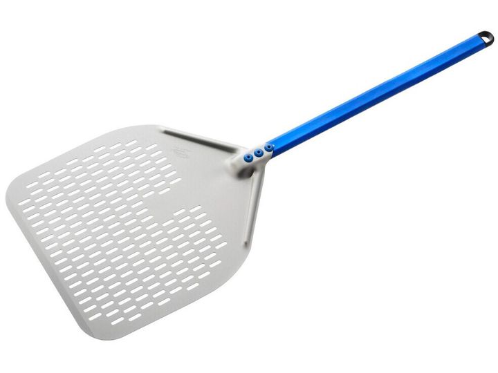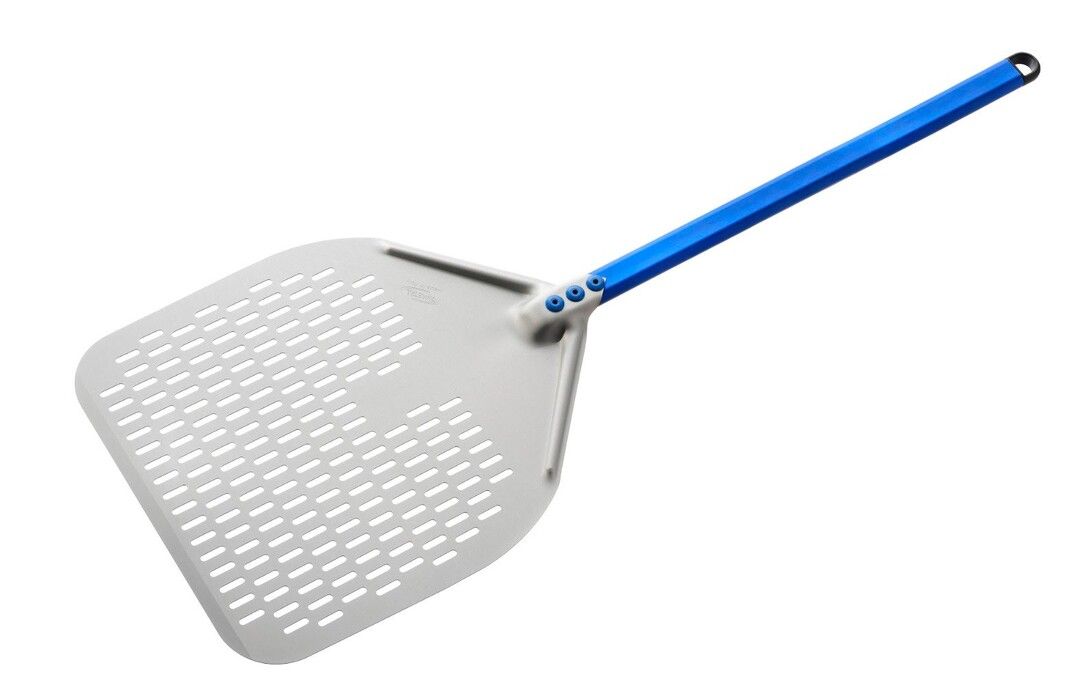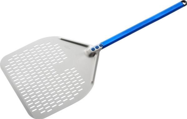 Gi.Metal Azzurra Rectangular Perforated Pizza Peel 36x36 cm Handle 60 cm