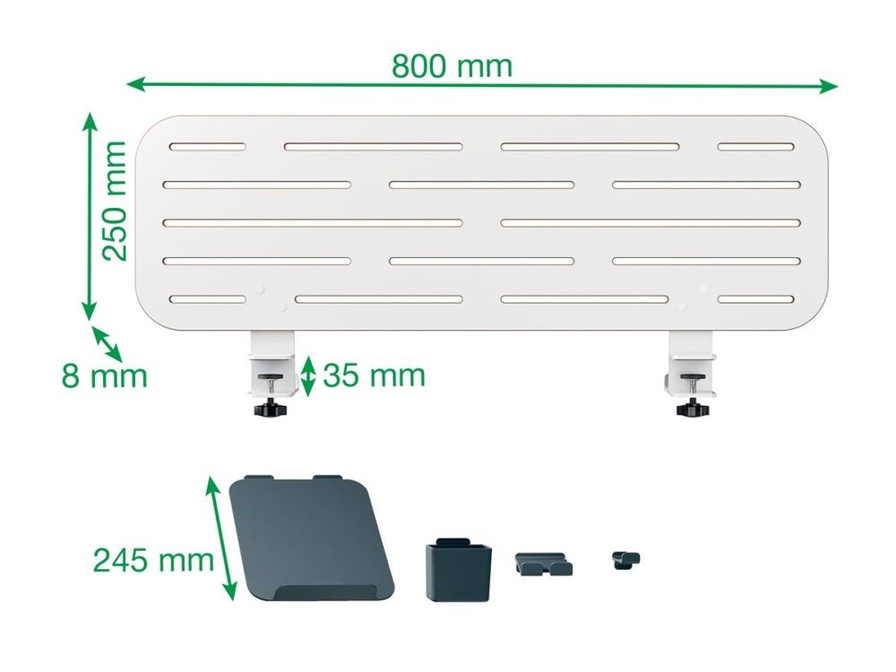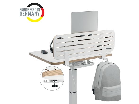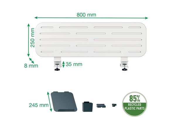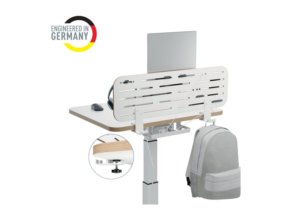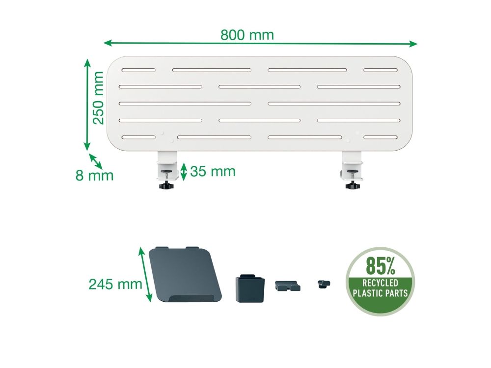 Leitz Ergo pegboard skrivebordsorganisator er designet for å forbedre organiseringen og effektiviteten på arbeidsplassen din. Med sin moderne, minimalistiske stil har denne allsidige oppbevaringsløsningen plass til en bærbar datamaskin, smarttelefon og kroker for hodetelefoner, alt i én kompakt enhet. Den klemmemonterbare installasjonen sikrer stabilitet, mens dens evne til å støtte skrivebord med en tykkelse på opptil 35 mm gjør det enkelt å sette den opp i ulike miljøer.