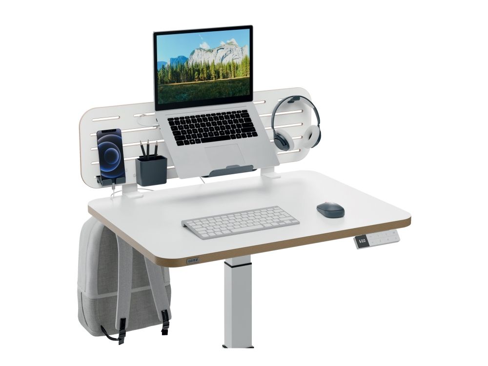 Leitz Ergo Pegboard organiseringstavle til skrivebordet med laptop holder, 80x25 cm hvid