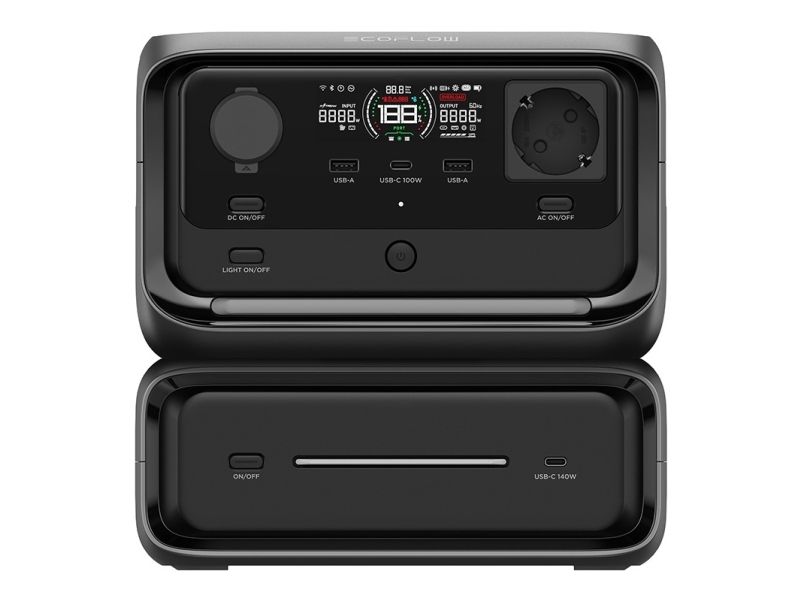 EcoFlow RIVER 3 MAX er bygget med tanke på holdbarhet og er brannsikker, fallbestandig og vanntett, i samsvar med IP54-standarden for vann- og støvbestandighet. Flere utgangstilkoblingsmuligheter lar deg drive flere enheter samtidig, inkludert USB Type-A, USB-C og AC-kontakter. Denne bærbare kraftstasjonen er utstyrt med Wi-Fi og Bluetooth-funksjoner og kan fjernstyres for enkelhets skyld, noe som gjør den til et passende valg for alle som trenger pålitelige og allsidige strømløsninger.