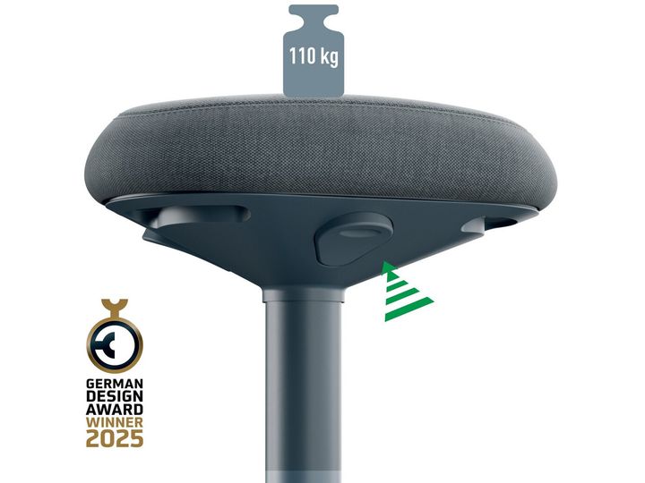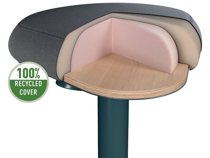 Den trekantede form minder om en sadelstol og fordeler vægten jævnt over bækkenet og er omgivet af blød skumpolstring for at reducere trykket på lår og ben. Det 9 cm tykke sæde er designet til komfort og kan bruges lænet eller helt siddende, hvilket tilskynder dig til at sidde mere oprejst og giver en ultrakomfortabel siddeoplevelse, der ligner en siddepude.