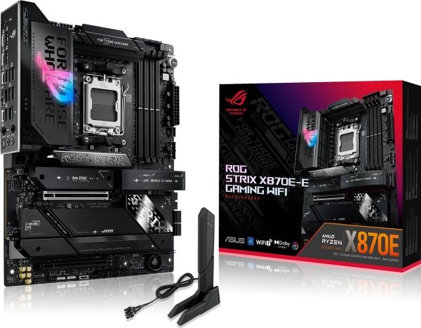 ASUS ROG STRIX X870E-E GAMING WIFI - Hovedkort - ATX - Socket AM5 - AMD X870E Chipset - USB4, USB-C 3.2 Gen 2x2, USB-C 3.2 Gen2, USB 3.2 Gen 2, USB 3.2 Gen 1 - Wi-Fi 7, 5 Gigabit Ethernet, Bluetooth - innbygd grafikk (CPU kreves) - HD-lyd (8-kanalers)