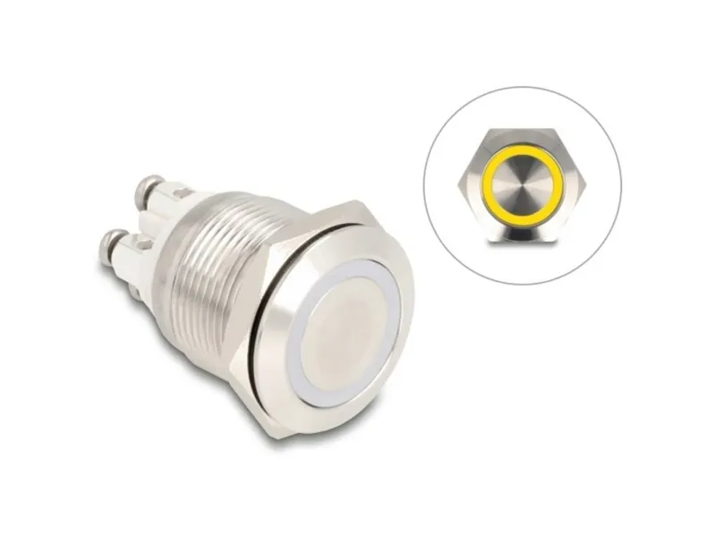 This Delock push button is designed for performance in various environments, featuring a robust construction that includes nickel-plated stainless-steel material. It is suitable for 19 mm installations and has a momentary action functionality, making it easy to operate. With its included yellow LED lighting, this push button provides visibility and adds a touch of brightness to your setup. The panel mountable design and IP65 compliance ensure suitability for a range of applications, whether in industrial settings or consumer electronics. Installation is straightforward with four screw terminals, allowing for secure connections. The flat actuator design adds to the aesthetic appeal while ensuring handling comfort during operation. Packaged in a retail box, this push button stands out in functionality and presentation, making it a valuable addition to any project requiring consistent and reliable button activation.