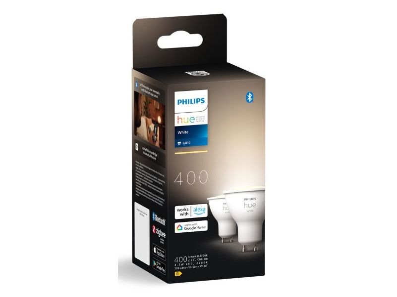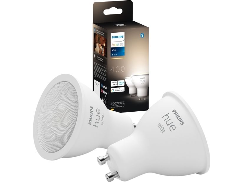 Philips Hue White - LED-pære for søkelys - GU10 - 4.2 W (ekvivalent 50 W) - klasse E - mykt, varmt hvitt lys - 2700 K (en pakke 2)
