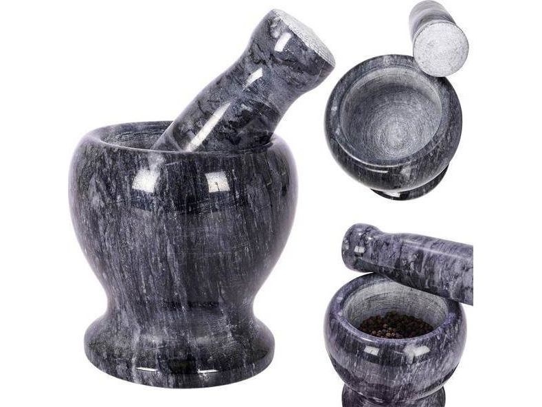 Støp/mørtel i granitt med hammer (11 cm) til å knuse krydder, urter og nøtter
