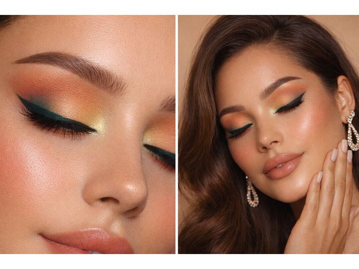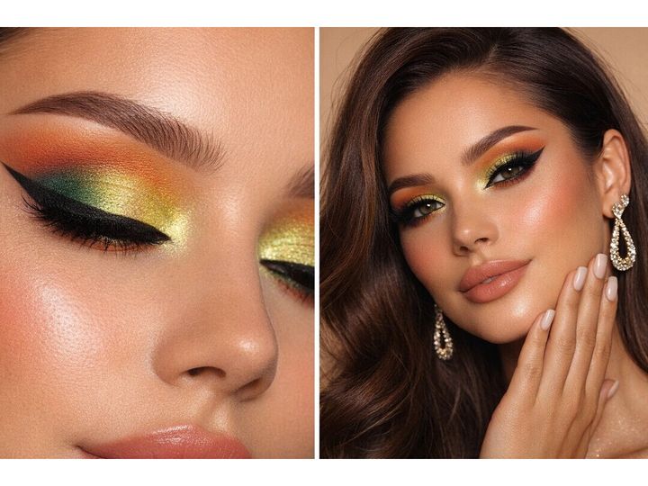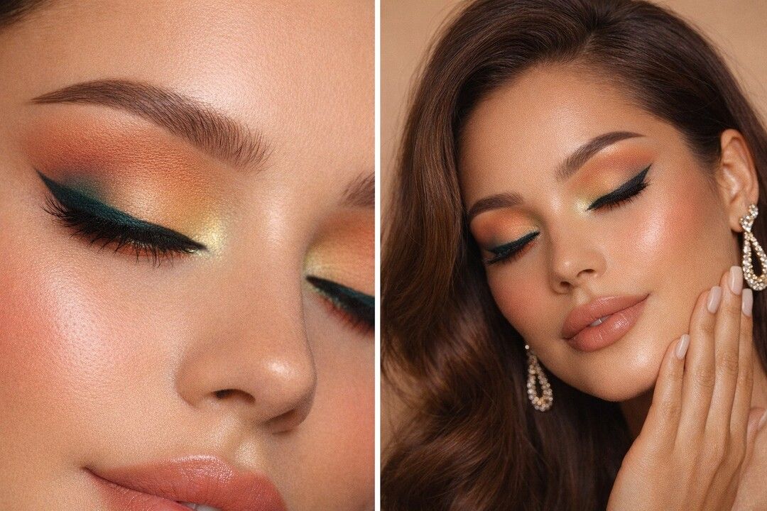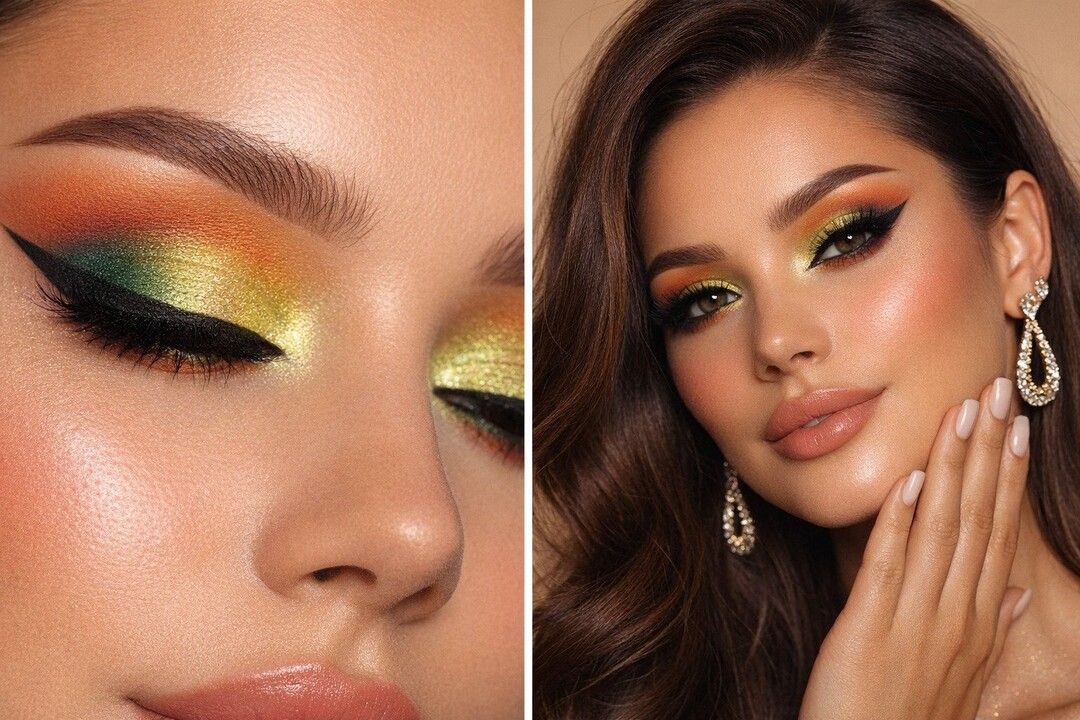 ✨ Brug en farvet eyepencil som base under de mest intense nuancer (fx grøn eller orange) for at forstærke dybden og give ekstra dramatik.