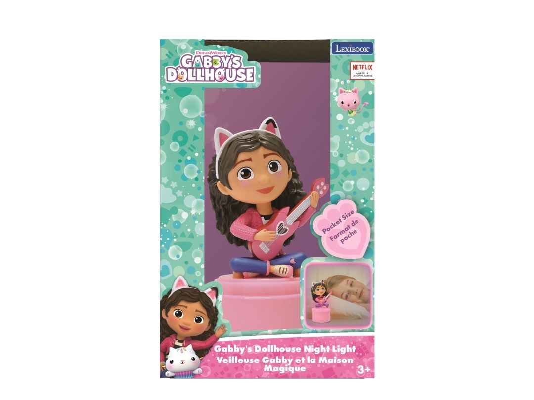 Gabby’s Dukkehus Natlampe i lommestørrelse! En LED natlampe med farveskiftende lys, der giver et blødt og beroligende lys, som du kan tage med dig overalt. 13 cm høj. Fra 3 år.