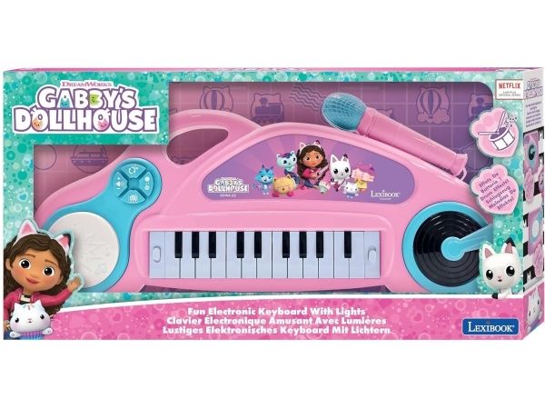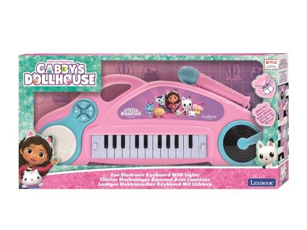 Gabby's Dukkehus, sjovt elektronisk keyboard med lys og mikrofon. Bliv en rigtig keyboardmusiker og sanger! Inkl. 4 lydeffekter og 22 melodier. Ekskl. 3 AA-batterier. Fra 4 år