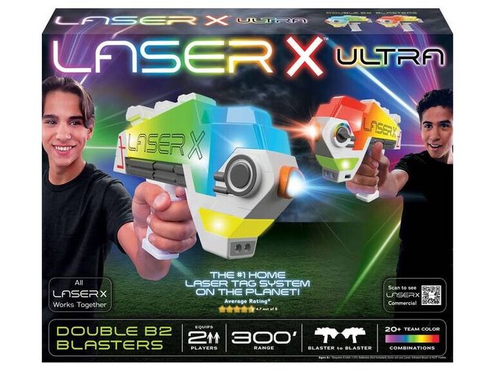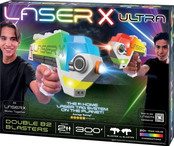 Laser X Ultra Laser blastersæt! Med 2 stk blaster, som kan skyde op til 90 meter. Blasters har lyseffekt så man kan se hvem der er blevet ramt og af hvem. Årets Legetøj indenfor Aktiv Leg 2024. Fra 6 år