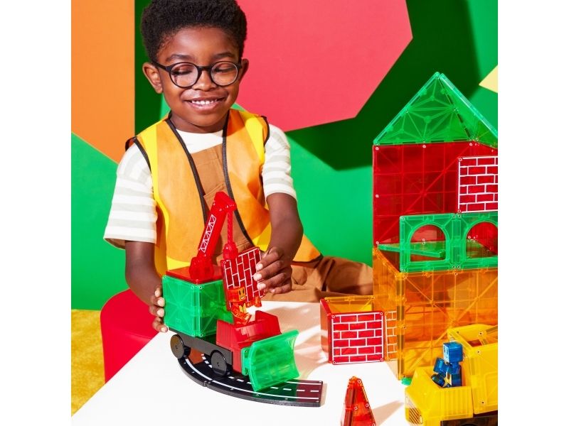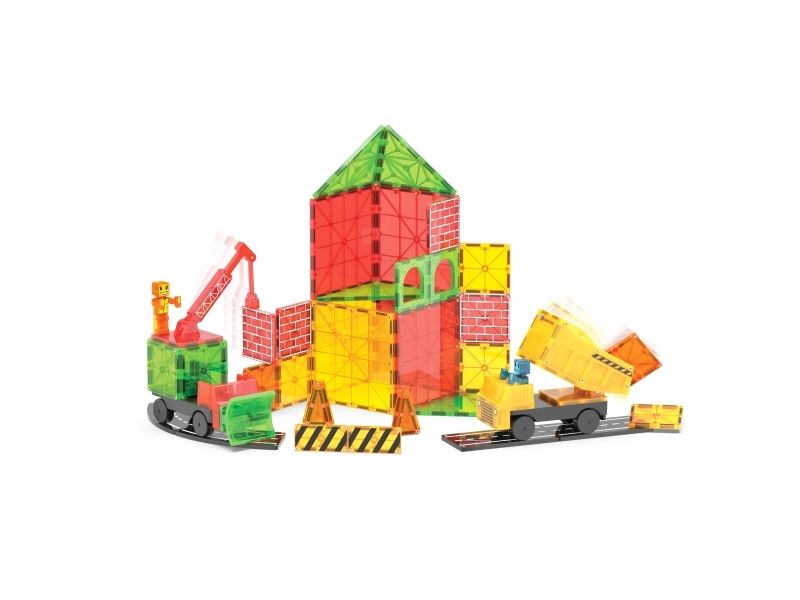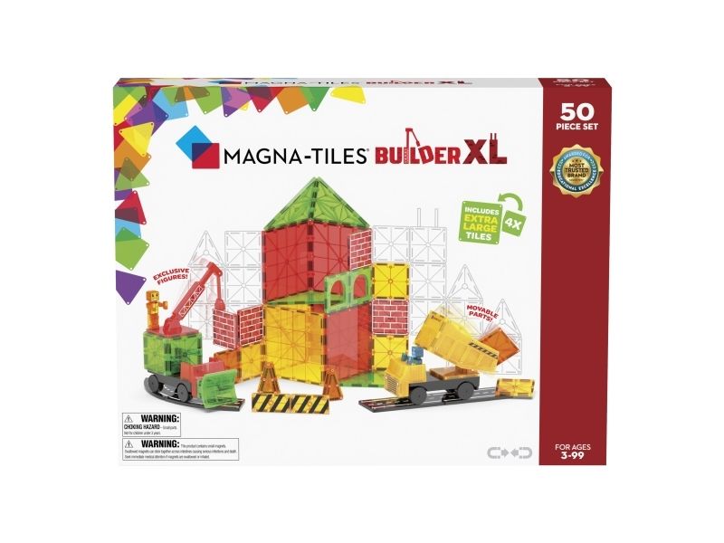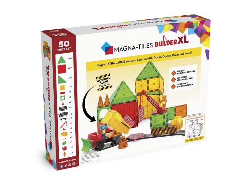 MAGNA-TILES® Builder XL 50 stk. sæt er et hit for hver lille entreprenør, der elsker magnetiske kraner, veje, biler og klodser, der klikker!