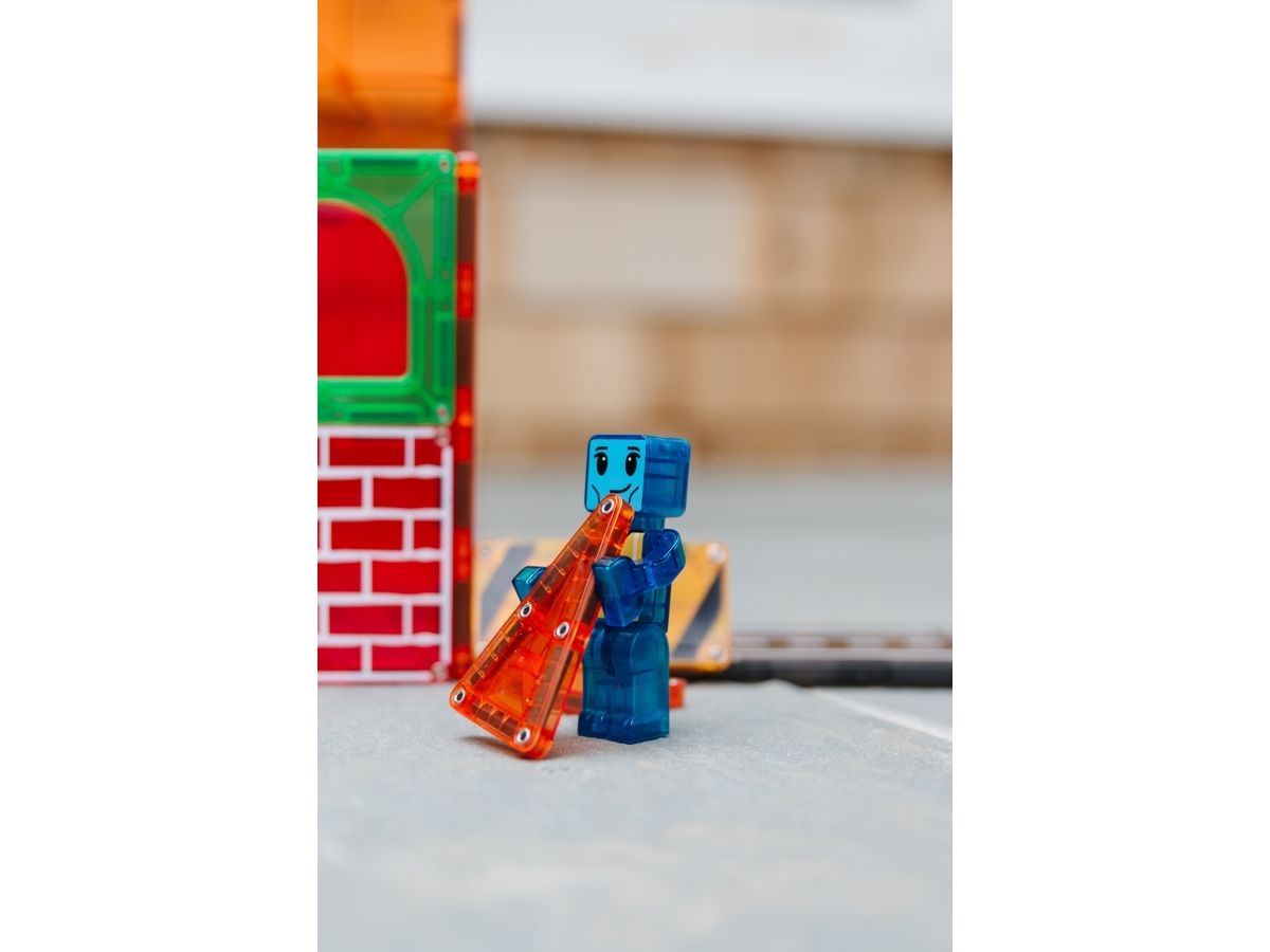 XL Builder-sættet kommer med to byggearbejderfigurer sammen med microMAGS-brikker.