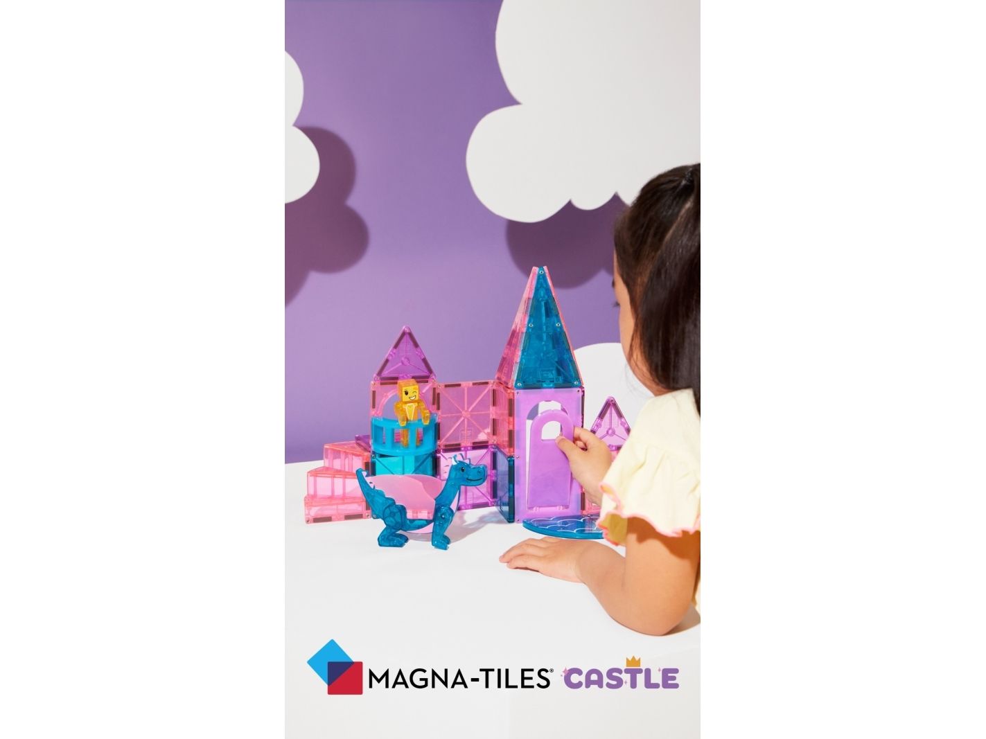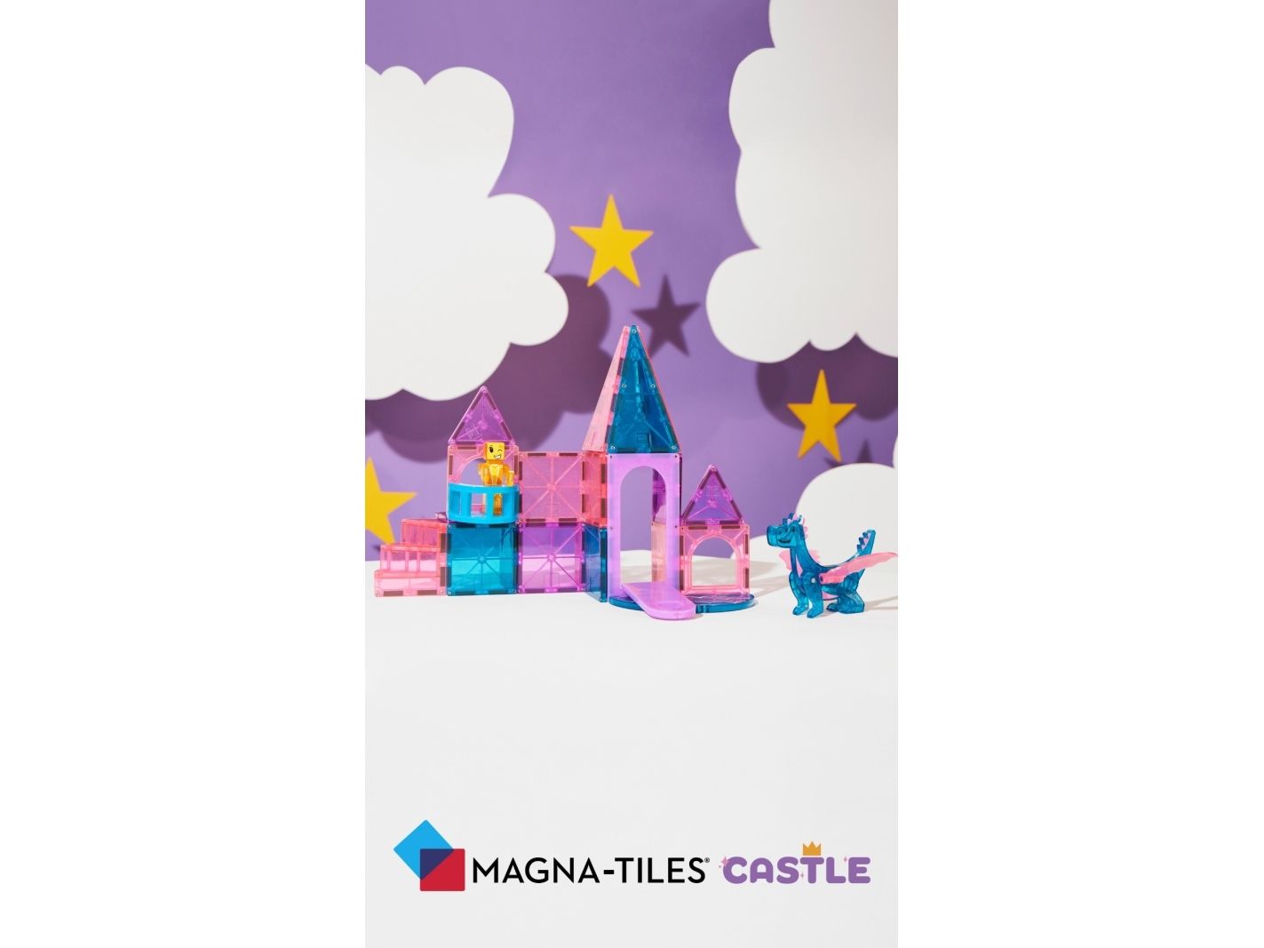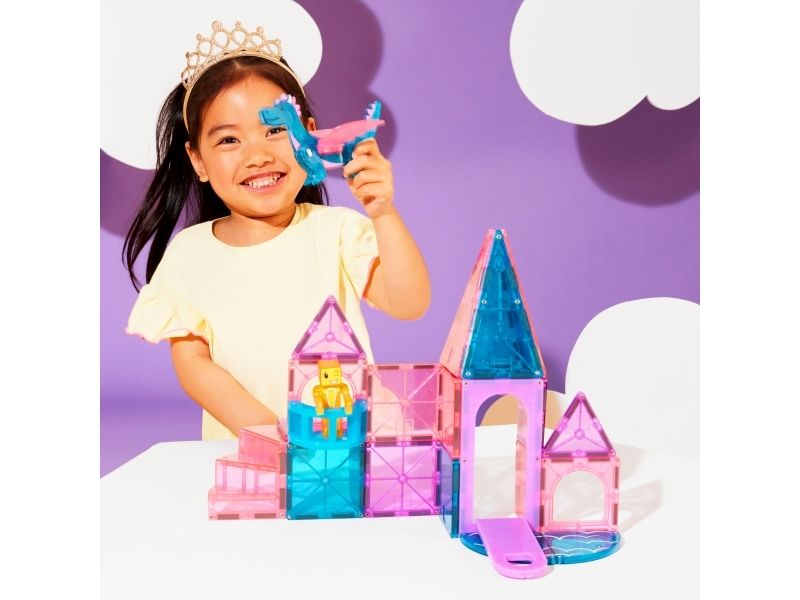 Slotssættet indeholder også MAGNA-TILES’ første balkon og spiraltrappe, samt et strejf af glitterbrikker for særlig eventyrfortryllelse.