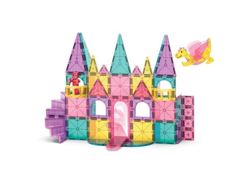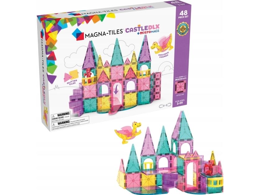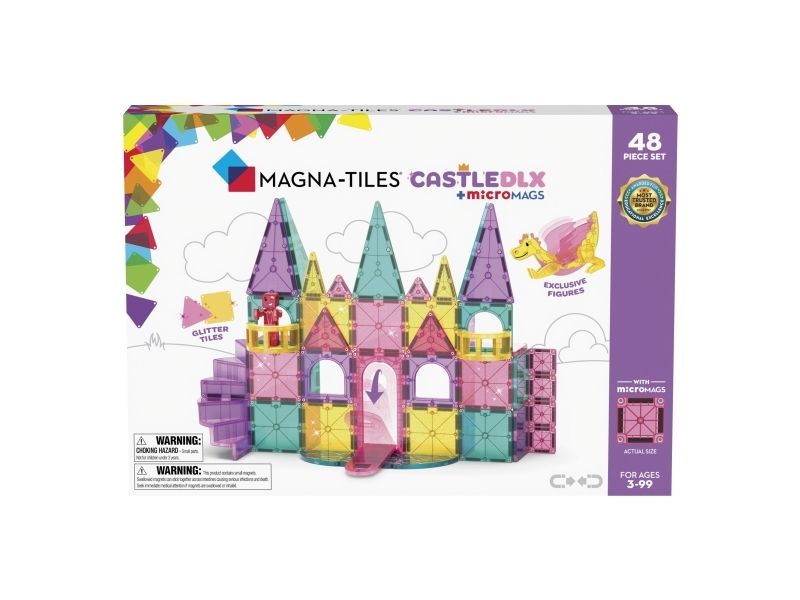 Hvad gør det unikt: Indeholder MAGNA-TILES® første fungerende vindebro, spiraltrapper og balkoner, eksklusive drage- og kongelige figurer, redesignede vinduer og microMAGS brikker for en endnu bedre historiefortælling og fantasifuld leg.