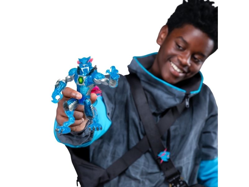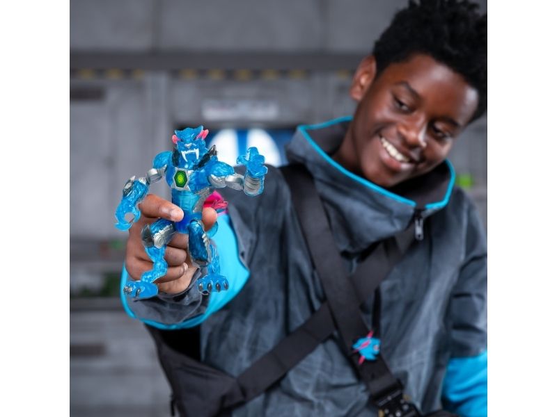 Actionfiguren er 13 cm høj, har over 20 bevægelsespunkter og er designet til at inkorporere MrBeasts karakteristiske blå farve med en gennemsigtig finish.
