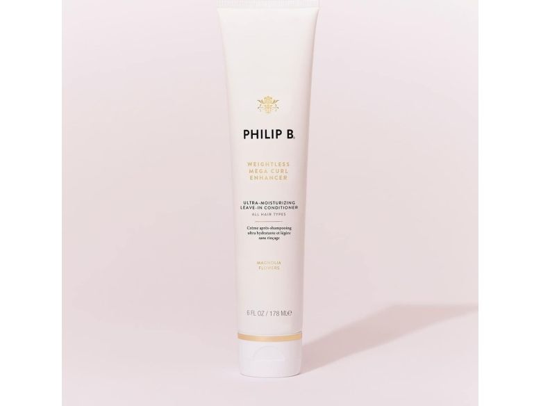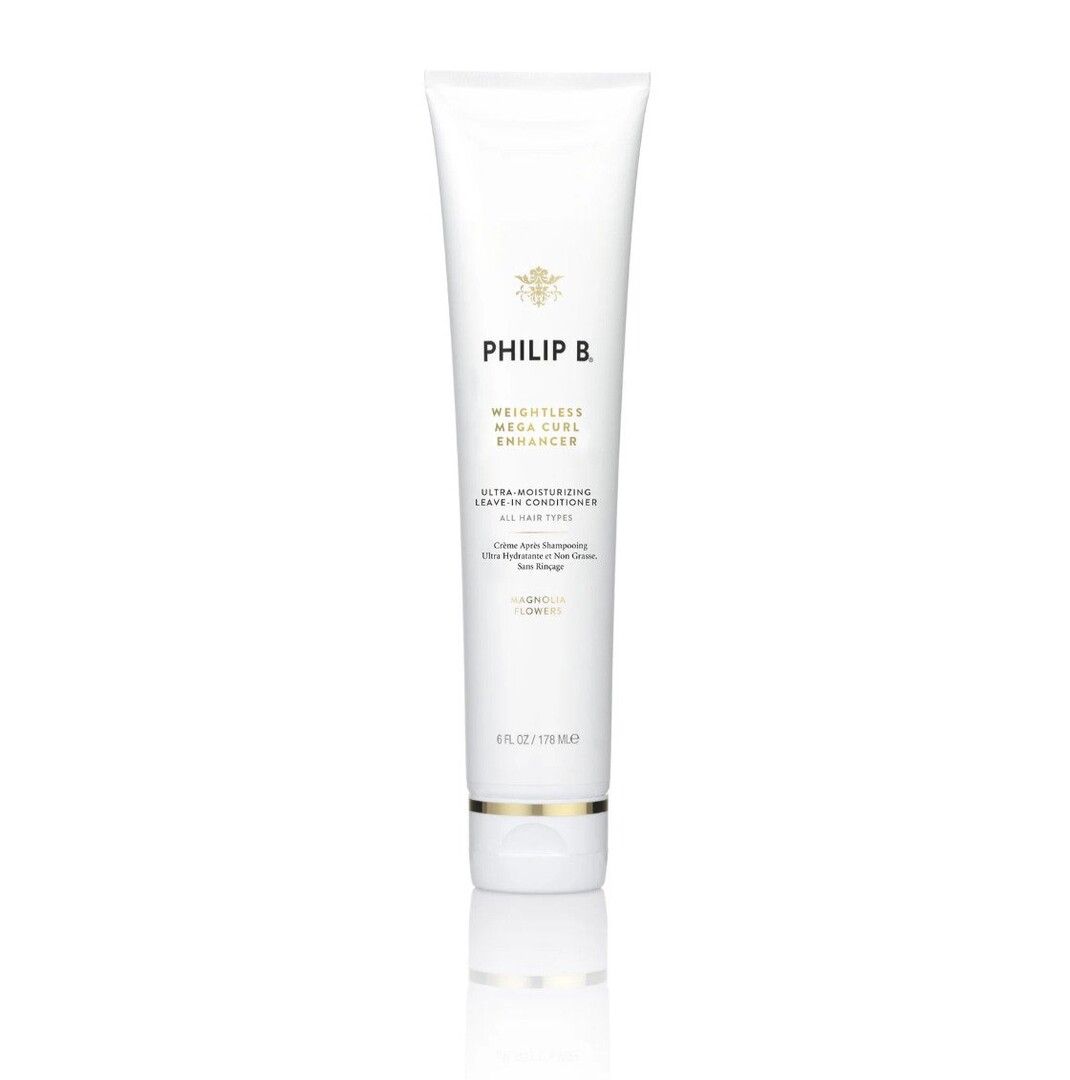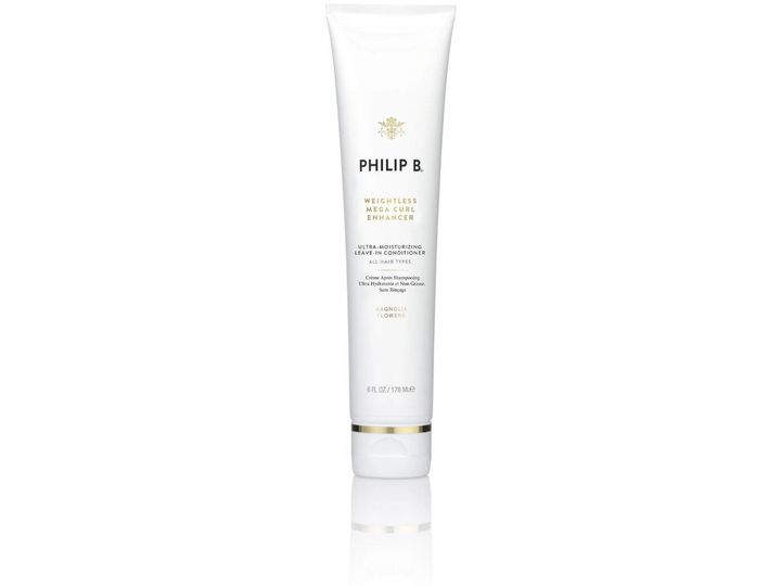 | Philip B Weightless Mega Curl Enhancer er en fugtgivende leave-in conditioner, der giver naturlige krøller nyt liv. |