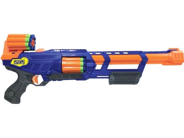 Dart Zone Legendfire Powershot Blaster tar sikte på toppen av sin klass. Blastern har två magasin och 18 skumpilar för snabb omladdning i stridens hetta. Maximalt skjutavstånd upp till 25 meter! Kompatibel med de flesta skumpilarna på marknaden. 8+