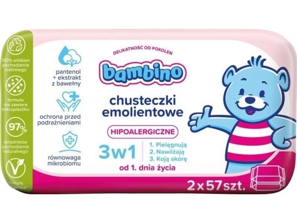 BAMBINO/Emollient wipes 3in1 2x57pcs