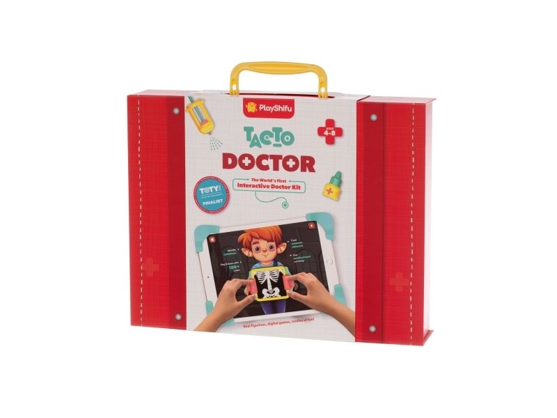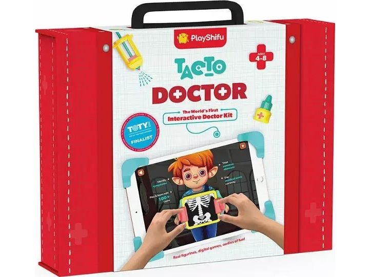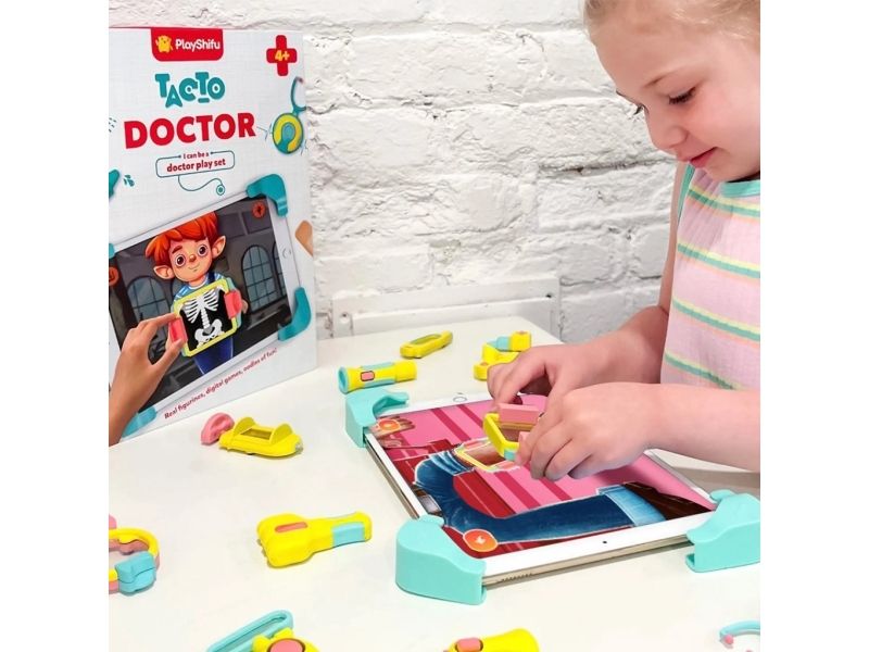 Indulge your child's curiosity with an immersive learning experience through the PlayShifu Shifu Tacto: Doctor. This innovative game set transforms your child's tablet into an interactive doctor's clinic simulator. Enhancing pretend play with story-based games and authentic STEM learning outcomes invites your young one to discover the exciting world of healthcare through hands-on digital exploration.Interactive doctor kit that brings medical play to lifeReal STEM learning tool (Science Technology Engineering Mathematics)Enhances pretend play with digital interactionStimulates cognitive development through gameplayFosters social-emotional intelligence in a healthcare settingNow available in Nordic languages: Swedish Danish and Norwegian!Interactive doctor kit for kids  Shifu Tacto Doctor isn't just another toy?it's an interactive doctor's kit designed by leading educators to captivate your child with engaging story-driven games. This comprehensive set introduces your child to the fascinating world of healthcare and medical science in an immersive and interactive environment that blends physical pieces with digital play for balanced meaningful screen time. The 12 mini medical tool figurines magically spring into action when placed on your tablet screen  letting your child experience being a real physician. Real STEM learning tool  While it's playtime for kids it's valuable learning time too! Deeply rooted in STEM principles (Science Technology Engineering and Mathematics) this game set helps children explore scientific concepts through hands-on pretend play. It builds understanding of basic medical procedures health concepts and first-aid techniques transforming entertainment time into productive learning sessions that develop critical thinking skills. Enhances pretend play  Thoughtfully designed to boost imagination this play set elevates pretend play to new heights. Whether checking a patient's temperature or analyzing X-rays each activity enhances your child's problem-solving abilities and builds knowledge through play. The best part? Each session introduces a new storyline keeping your child consistently engaged and excited to learn more. Stimulates cognitive development  Perfectly crafted for children ages 4-8 the set features 3 interactive games with over 100 progressive levels that stimulate cognitive development. Designed by leading educators we're committed to making screen time meaningful by fostering independent learning and problem-solving skills in children through guided discovery. Fosters social-emotional intelligence  Stepping into a doctor's role helps your child develop empathy understand emotions and respond appropriately?all critical aspects of social and emotional intelligence. By equipping them with foundational knowledge about medical procedures we aim to transform potentially stressful doctor visits into friendly informed experiences they can approach with confidence. Available in Nordic Languages!  We're proud to offer full support in Swedish Danish and Norwegian as well as English making this educational tool accessible to children across the Nordic region in their native languages. Package includes  The Tacto Doctor set contains four frames and 12 unique figurines including a stethoscope thermometer medicine bottle X-ray bandage flashlight magnifier scissors spray syringe BP pump and ultrasound?all designed to interact seamlessly with your tablet. Product specificationsCompatible with iPads 5 and above (iPad 1 & iPad Mini 1 2 and 3 not supported)  iPad Air 2 and aboveAlso compatible with Android tablets: 7-inches and above minimum 3GB RAM (Samsung Tab A and S7+ not supported)All Android mobile phones are incompatibleCan be used with Fire HD 10 Fire HD 10 Plus (2021 & 2023) Fire HD 8 Fire HD 8 Plus (2020 & 2022)Dimensions: 235 × 300 × 45 mmWeight: 640 gWhat is STEM? STEM stands for Science Technology Engineering and Mathematics. It's an educational approach that integrates these four disciplines to provide practical real-world learning experiences. STEAM is an expanded version that includes Arts along with the STEM subjects.