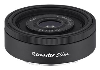 Remaster Slim Remaster Slim is inspired as a homage to the P&S film cameras. It reinterprets the point-and-shoot concept with modern technology, creating a unique interchangeable optical lens that allows users to switch focal lengths easily. It is designed to preserve the warm and rich feel of the analogue film while delivering digital image quality that compensates for the limitations of classic lenses. Even when combined with the module, this lens remains extremely thin, compact, and lightweight, making it perfect for capturing everyday snapshots or landscapes with maximum shooting freedom anytime and anywhere.