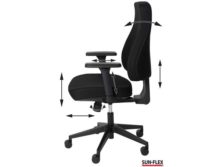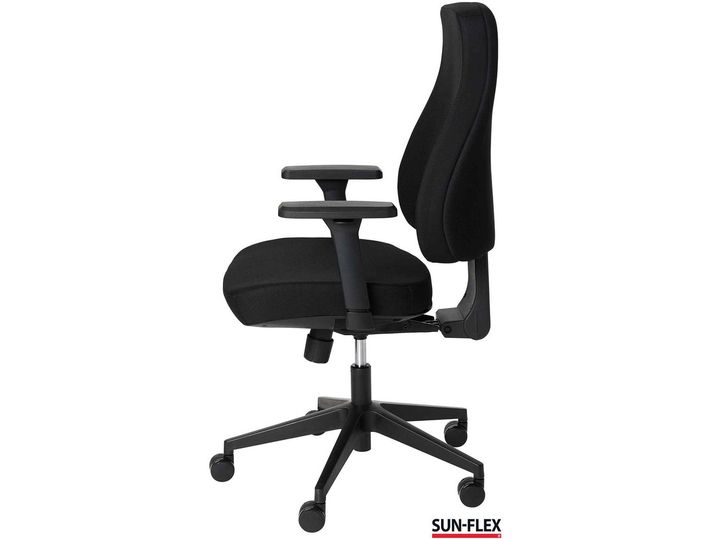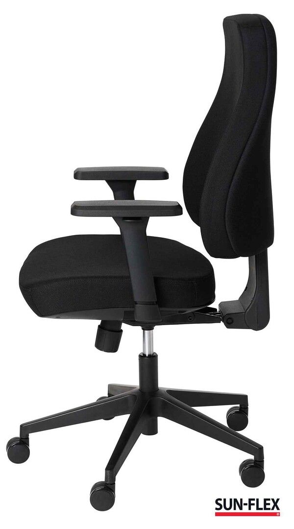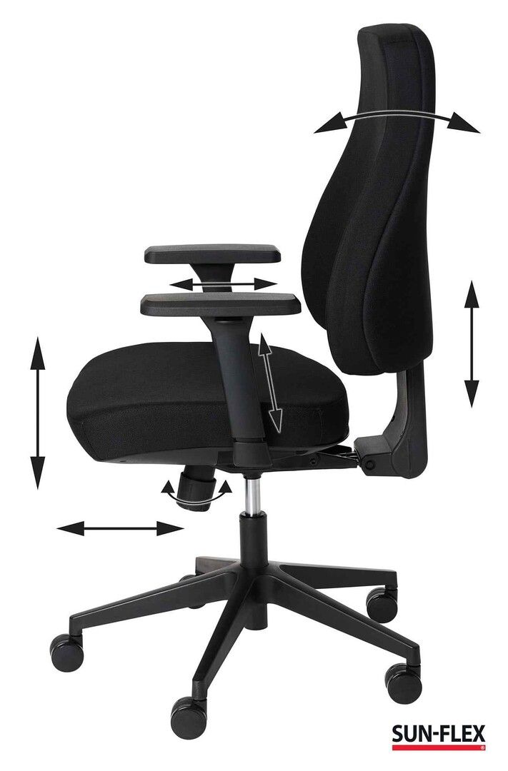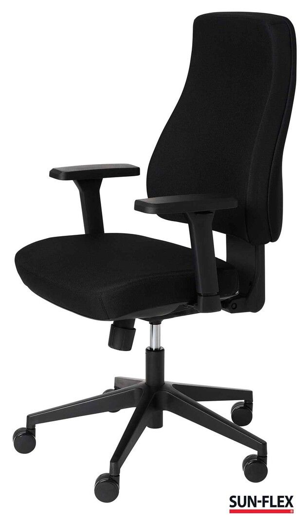 SUN-FLEX®OFFICECHAIR MB blev skabt for at imødekomme de ændringer og nye behov, der opstår på nutidens arbejdspladser, uden at gå på kompromis med ergonomien. Med kvalitetsdetaljer, der optimerer ergonomien, skaber fleksibilitet og giver høj siddekomfort, tilbyder SUN-FLEX®OFFICECHAIR MB flere valgmuligheder for brugeren. Det støttende, kraftige, justerbare og bløde ryglæn tilbyder en fuldkontakt ryg med overlegen komfort og ergonomi. Det giver støtte langs hele ryggen, fra lænd til bryst, hvilket reducerer belastningen på rygsøjlen og fremmer en naturlig siddestilling. Ved at støtte hele ryggen sikrer ryglænet en jævn fordeling af tryk og aflaster musklerne, hvilket mindsker risikoen for rygsmerter og stivhed. Det bløde og samtidig støttende sæde sikrer komfort, fremmer korrekt siddestilling, mindsker træthed, forbedrer produktiviteten og kan forebygge helbredsproblemer. Valgfrihed og mulighed for individuel tilpasning er centrale egenskaber, og med SUN-FLEX® OFFICECHAIR MB kan du nemt og intuitivt justere stolen efter dine personlige behov. Den tilbyder højdejusterbart ryglæn, åben eller låst vippefunktion, sædedybdejustering samt 4D-armlæn.