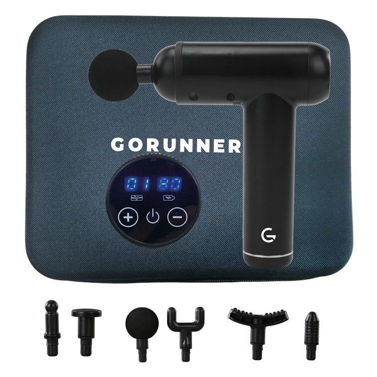 GORUNNER Massage Gun 2.0 leveres med et digitalt display og 6 utskiftbare massasjeputer. Du kan finjustere ønsket massasjestyrke fra 1-99 via knappene på displayet. Med denne massasjepistolen kan du lindre muskelstivhet og -ømhet, øke blodsirkulasjonen, forbedre bløtvevshelsen og optimalisere restitusjonstiden.