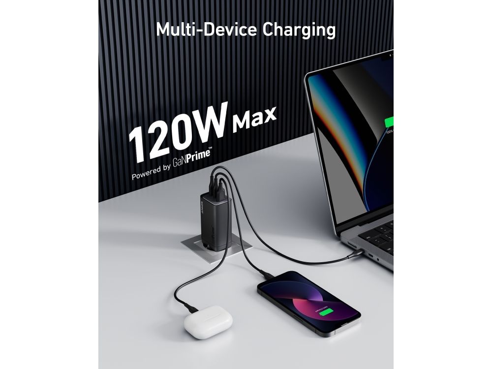 Anker GaNPrime 737 - Strømbank - 120 watt - Anker PowerIQ 4.0 - 3 utgangskontakter (2 x USB-C, USB) - svart