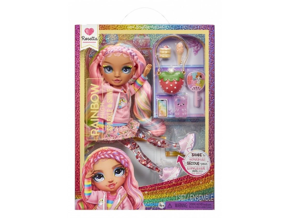 Rainbow High Sparkle & Shine Fashion Dolls- Rosetta (Pink). Doll type: Fashion doll, Doll's gender: Female, Recommended age (min): 4 yr(s), Suggested gender: Boy/Girl. Height: 280 mm. Material: Plastic, Textile, Product colour: Multicolour