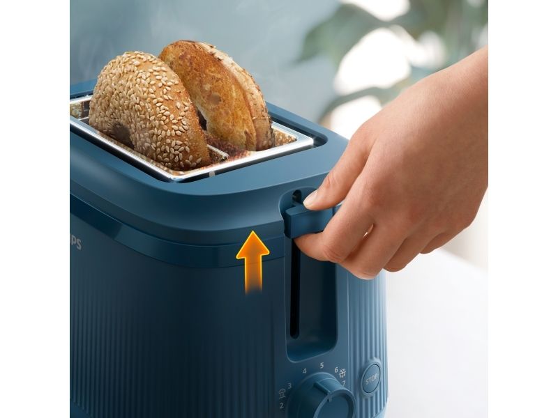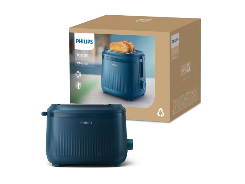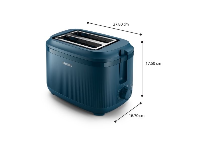 The Philips 3000 series HD2511 toaster meets everyday toasting needs with convenience and efficiency. It offers eight browning levels for customization based on preferences. The toaster features a self-centering slot type for even toasting, while the built-in slide-out crumb tray simplifies cleaning. With a power consumption of 830 W, this unit is equipped with an auto shut off function for safety and complies with multiple directives for standards and safety, including BPA-free materials.