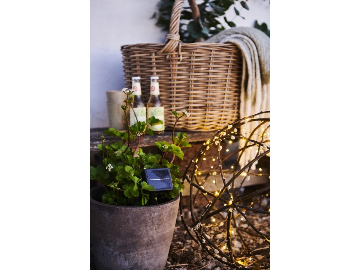 Inklusiv 2 meter ledning og et solcellepanel. Solpanelet er udstyret med et spyd, der placeres i jorden i nærheden af ​​lysdekorationen (op til 2 meter væk) i et solrigt område.