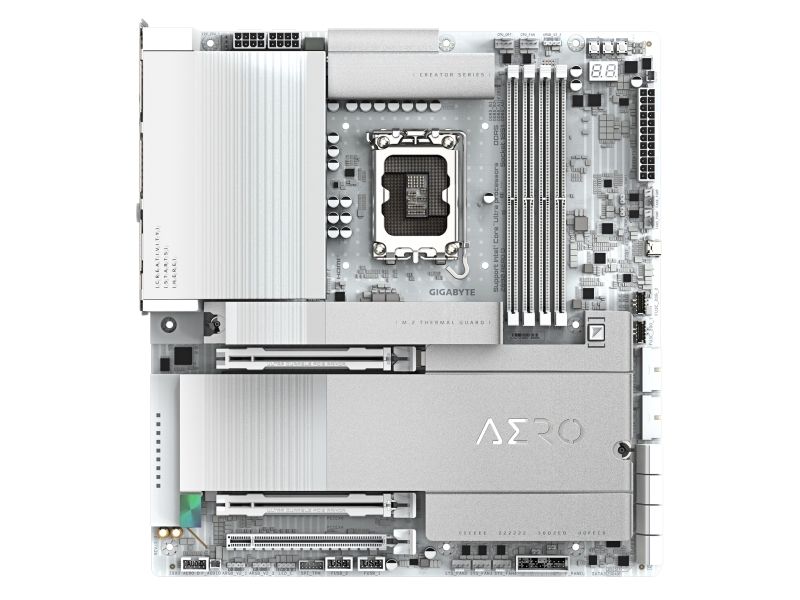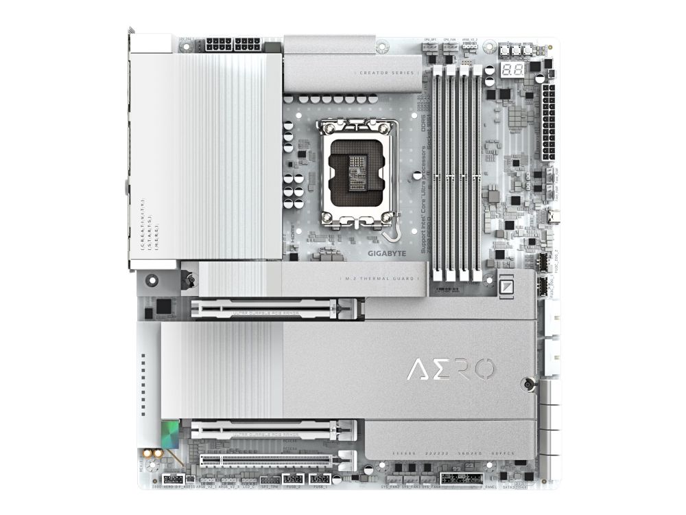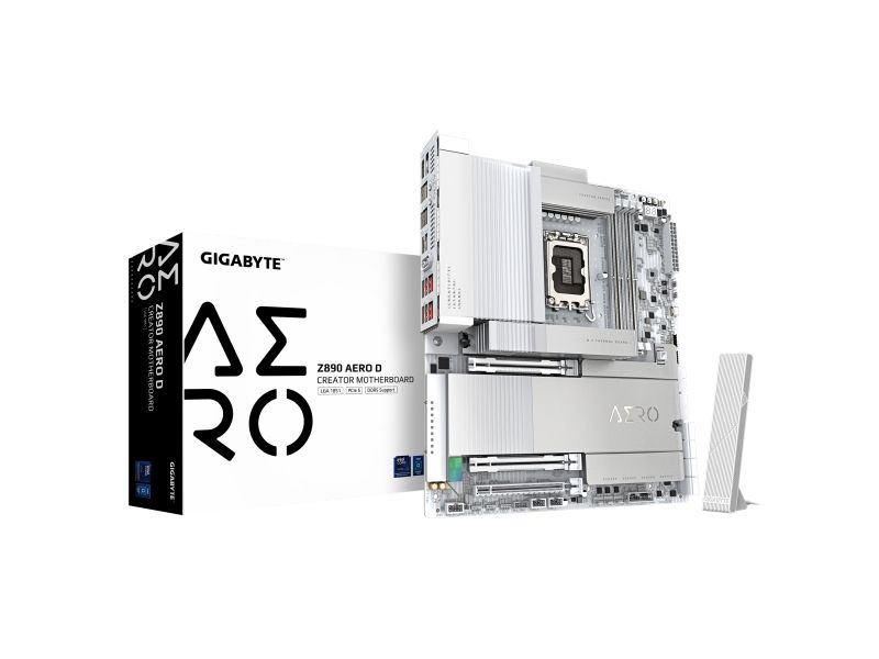 Elevate your computing experience with GIGABYTE's renowned motherboard series: AORUS, AERO, and GIGABYTE. Featuring innovative designs and advanced features, these boards offer exceptional performance and reliability. Whether you're a gamer, content creator, or professional, our series cater to your needs, ensuring uncompromising quality and cutting-edgeGIGABYTE Z890 AERO D Motherboard - Supports Intel Core Ultra (Series 2) CPUs, 16+1+2 phases VRM, up to 9500MHz DDR5 (OC), PCIe 5.0 M.2, Wi-Fi 7, Thunderbolt 5. Processor manufacturer: Intel, Processor socket: LGA 1851 (Socket V1), Compatible processor series: Intel Core Ultra (Series 2). Supported memory types: DDR5-SDRAM, Maximum internal memory: 256 GB, Memory slots type: DIMM. Supported storage drive interfaces: M.2, SATA III, Supported storage drive types: HDD & SSD, RAID levels: 0, 1, 5, 10. Ethernet interface type: 10 Gigabit Ethernet, LAN controller: Marvell AQtion AQC113C, Top Wi-Fi standard: Wi-Fi 7 (802.11be). Component for: PC, Motherboard form factor: Extended ATX, Motherboard chipset family: Intel