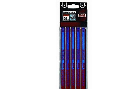 Nedstrygerklinge SANDFLEX® bi-metal, 3906. Sandflex® nedstrygerklinge i bi-metal. Praktisk talt brudsikker og splintsikker klinge til savning i alle materialer. Takket være et sejt fjederstål i ryggen og tænder af hårdt, slidstærkt HSS-stål, bevarer klingen sin skarphed meget længere. Sandflex® kombinerer meget høje skæreegenskaber med en høj grad af fleksibilitet, og er ubetinget den mest sikre klinge. Særligt velegnet til installations- og monteringsopgaver.