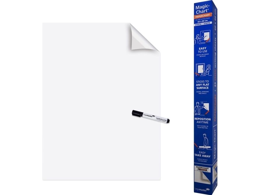 Legamaster Magic Chart Paperchart (papir) - ruller med 25 "tavler" 60x80cm - Statisk Elektrisk film - hæfter på næsten alle overflader