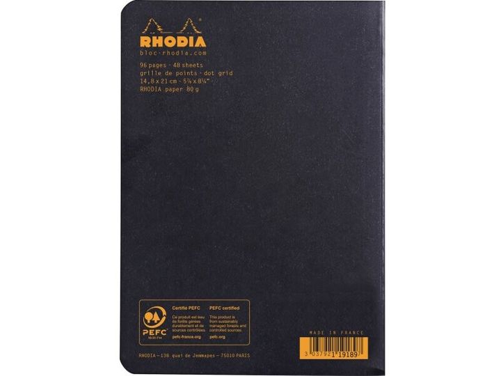 Rhodia Kladdehæfte A5 linieret - sort omslag - 80gram 48 sider (Rhodia nr. 119189C)
