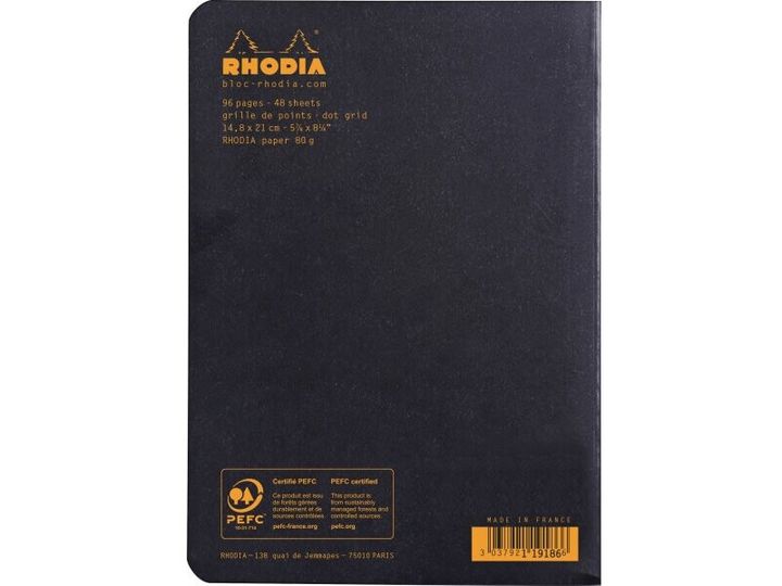 Rhodia Kladdehæfte A5 dotted papir - sort omslag - 80gram 48 sider (Rhodia nr. 119186C)