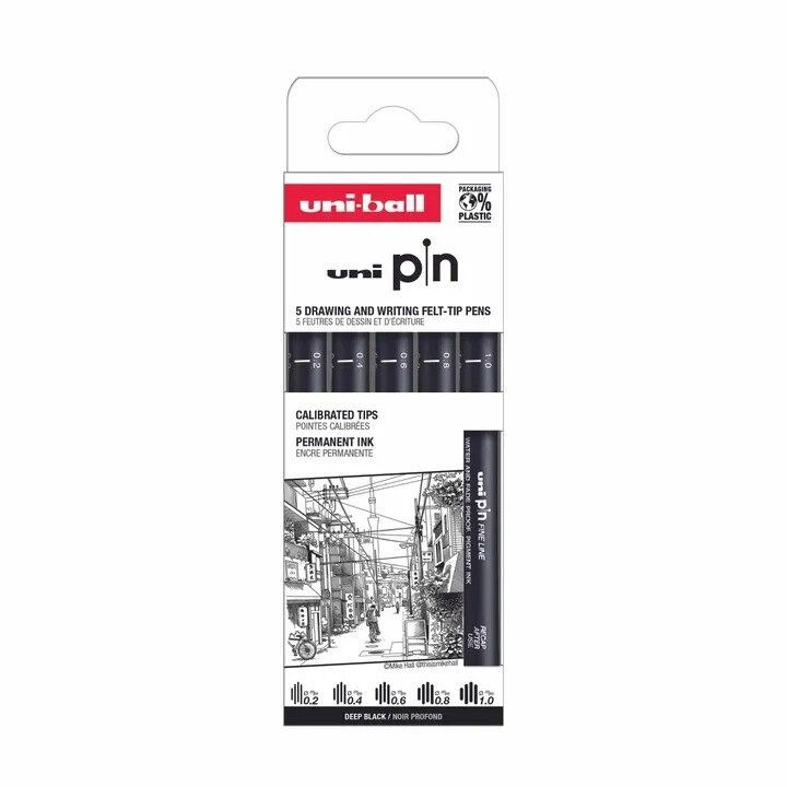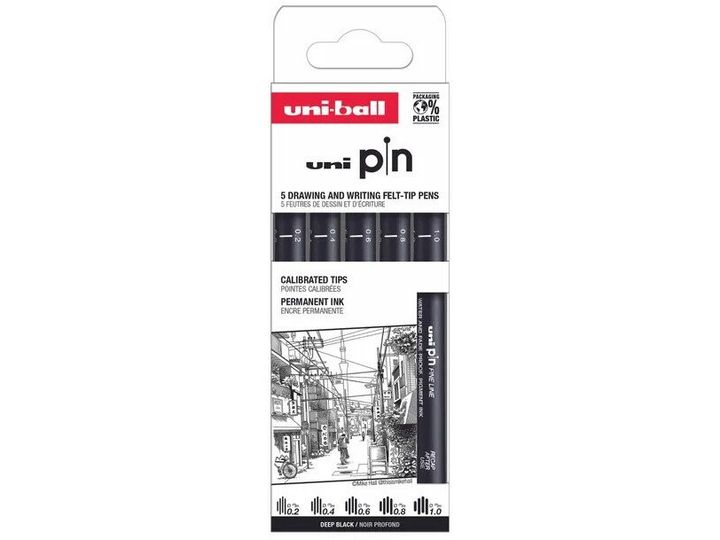 Uni Pin set "classic" 5 stk (0,2/0,4/0,6/0,8/1,0) Black pigmented ink