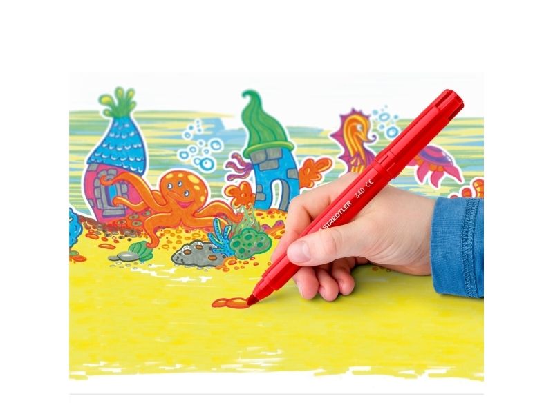 Experience creativity with the STAEDTLER 340 fiber-tip pen, designed for both writing and drawing. This pen features water-based ink, allowing for smooth application in assorted colors while being washable for easy cleanup. The jumbo line width of 3 mm ensures visibility and boldness in every stroke, making it a choice for projects that require a touch of vibrancy. Made from durable polypropylene, the barrel provides a comfortable grip for extended use. The ventilated safety cap adds an extra layer of safety, suitable for users of all ages.