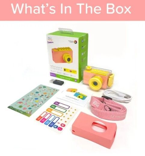 Spark creativity and capture childhood adventures with myFirst Camera 2. Designed for kids aged 3 to 12 this lightweight durable camera delivers real photo and video quality in a kid-safe package. With an IPX8 waterproof case a bright color display and fun frames it turns every outing into a photo mission while building confidence and creativity.IPX8 waterproof and shockproof caseHigh quality 8 MP photos and Full HD videosLightweight design with long lasting 1000 mAh battery5.1 cm IPS display with kid friendly interfaceFun preloaded frames and expandable storage up to 32 GBIPX8 waterproof and shockproof case Built for adventure the included IPX8 case protects the camera from drops and lets kids shoot underwater down to 3 m for up to 180 minutes. Reinforced high strength polymers keep the camera safe at the pool beach or playground so kids can focus on the fun. High quality 8 MP photos and Full HD videos An 8 megapixel sensor captures sharp 3264 x 2448 photos and smooth 1920 x 1080 videos. Children get real results they can be proud of making it perfect for creative learning school projects and family memories. Lightweight design with long lasting 1000 mAh battery Weighing only 67 g the camera is easy for small hands to hold and carry. The 1000 mAh battery supports hours of shooting so kids can keep exploring and snapping without frequent recharging. 5.1 cm IPS display with kid friendly interface The 5.1 cm color IPS screen shows vivid bright images and makes framing shots simple. A clear intuitive interface helps young photographers learn quickly and enjoy the process from the first click. Fun preloaded frames and expandable storage up to 32 GB Built in photo frames add playful flair to every shot. With microSD support up to 32 GB there is plenty of space for thousands of photos and videos so nothing gets left behind. Package includesmyFirst Camera 2 8 MP - PinkMicro USB charging cableSilicone SleeveWaterproof casing IPX8 to 3 mFun Decorative stickers 2 piecesNeck lanyardQuick Start GuideProduct specificationsColor: PinkAge range 3 to 12 yearsDisplay 5.1 cm color 2  IPSPhoto resolution 3264 x 2448Video resolution 1920 x 1080/ 30fpsBattery capacity 1000 mAhCharging time 3 to 4 hoursStorage microSD up to 32 GBCamera weight 67 gWaterproof case rating IPX8 usable to 3 m for up to 180 minutes