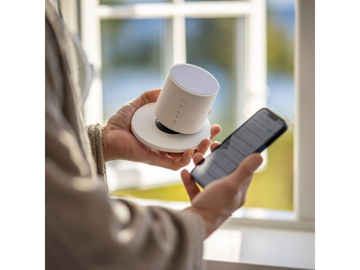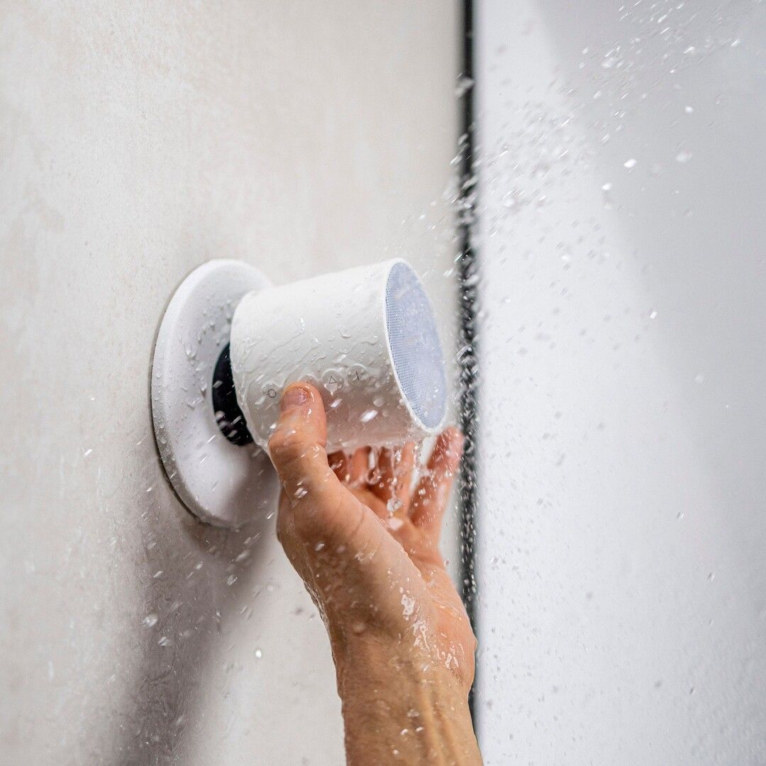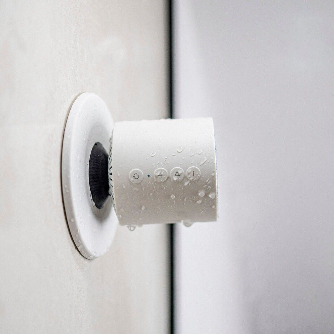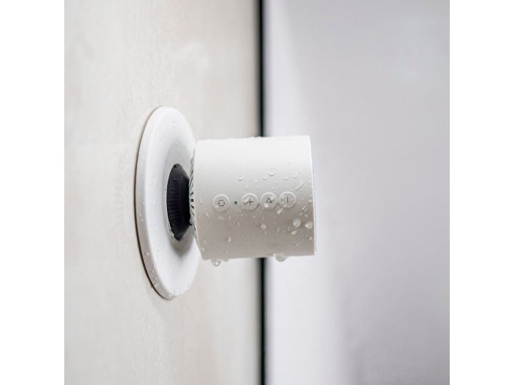 Høyttaleren kan enkelt tas av for lading og settes sikkert på plass igjen. Du slipper å rote rundt utenfor dusjen med våte hender for å finne telefonen og skru opp volumet. Høyttaleren har en rekke knapper for å styre ulike funksjoner. Spill av og sett på pause ved hjelp av to knapper for å styre volumet. Det tar bare ett trykk direkte fra dusjen.