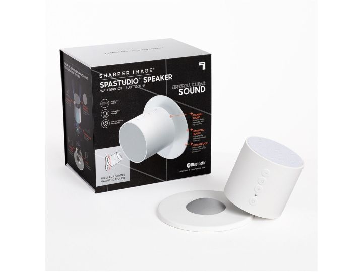 Strøm musikk trådløst med førsteklasses lydkvalitet med Sharper Image Bluetooth-høyttaler for badet. Høyttaleren er IPX7-vanntett og fungerer feilfritt i dusjen eller på badet, noe som gir deg den ekstra energien du trenger for å få en god start på morgenen.