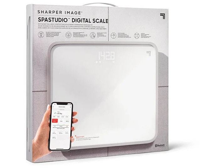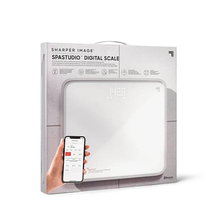 Hold styr på vekten din med Sharper Image® SpaStudio™ kroppsvekt. Den kan måle vekt, BMI, kroppsfett og mye mer.