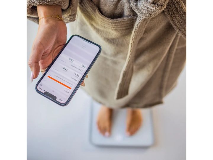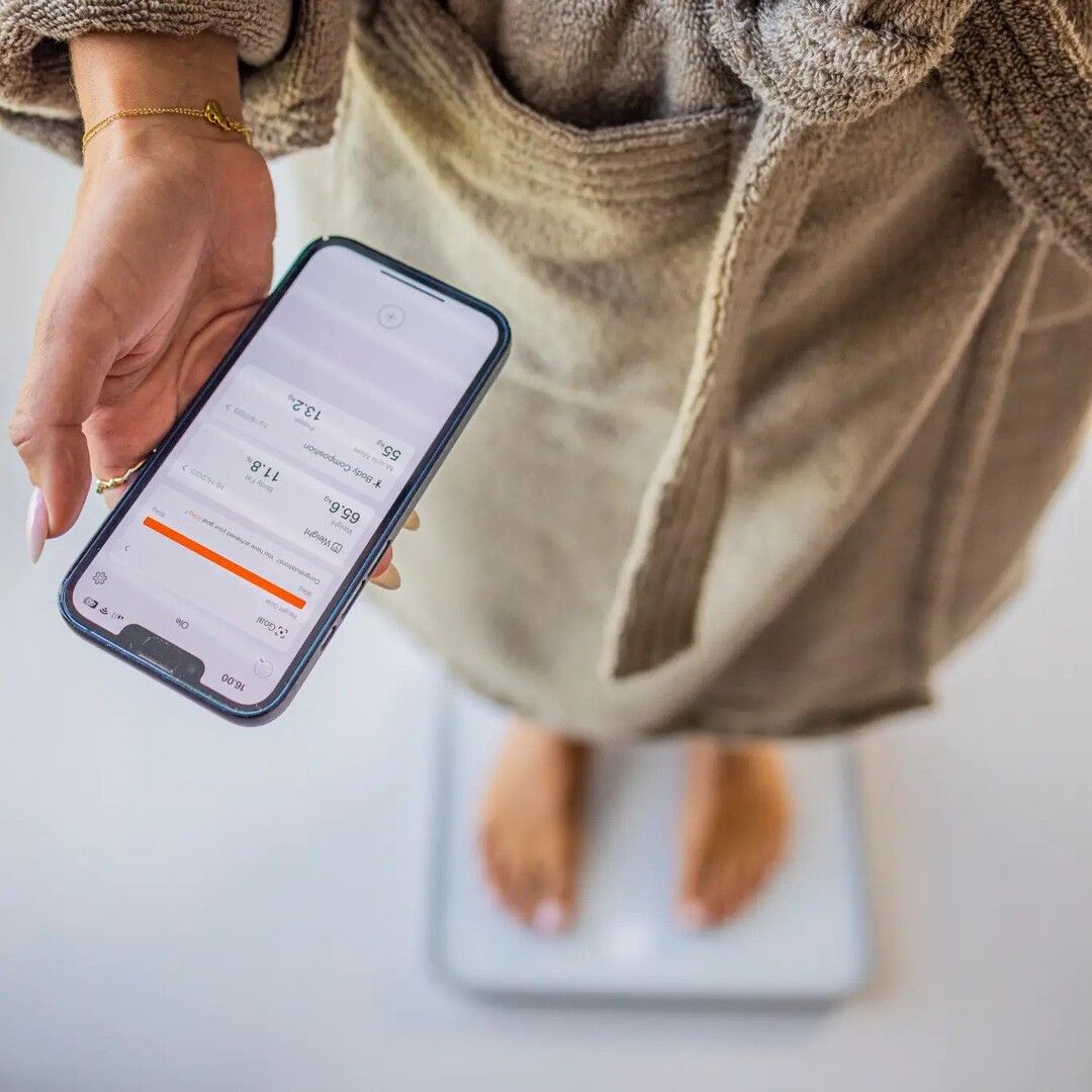 Vekten leveres med en tilhørende app som automatisk synkroniserer innsamlede data fra vekten til appen via Wi-Fi eller Bluetooth. Dette gir deg en helhetlig tilnærming til helseovervåkingen din.