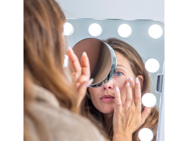 Optimaliser skjønnhetsrutinen din med Sharper Image Hollywood sminkespeil, som enkelt kan vippes for den perfekte vinkelen mens du legger sminke.
