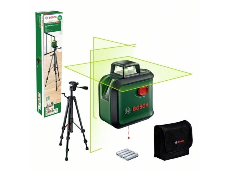Krydslinjelaser AdvancedLevel 360 Set Projektion fra en horisontal 360°-linje, 2 lodrette linjer og lotpunkt forneden, alle relevante funktioner til hurtig og nem vandret, lodret og retvinklet justering og overførsel af referencer, grøn laserteknologi: op til fire gange bedre synlig, selv ved lyse lysforhold, nøjagtighed på +/- 0,4 mm/m for præcise resultater, åbningsvinkel på 120° til lange laserlinjer, selv ved kort arbejdsafstand, produkt med bæredygtighedskarakteristika, yderligere oplysninger se nedenfor. Krydslinjelaser AdvancedLevel 360 Set, en allround til præcis justering, projektion fra en horisontal 360°-linje, 2 lodrette linjer og lodpunkt forneden, alle relevante funktioner til hurtig og nem vandret, lodret samt retvinklet justering og overførsel af referencer, grøn laserteknologi: op til fire gange så synlig, selv ved lyse lysforhold, nøjagtighed på +/- 0,4 mm/m for præcise resultater, åbningsvinkel på 120° for lange laserlinjer, konstrueret på bæredygtig vis, selv ved kort arbejdsafstand.