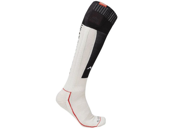 A technical sock designed to keep feet warm where fit, performance, and heat regulation are critical. Heating elements under the forefoot and over the toes are combined with materials and fit that perform even in tight-fitting shoes. The performance-oriented design makes them suitable for alpine skiing, snowboarding, cross-country skiing, cycling, and other activities where comfort and precision must work together. Heat can be easily adjusted to match changing conditions, using the included remote control. The merino wool blend and targeted knitting offers both warmth, breathability and comfort. A practical solution for year-round use in varying temperatures.Heat Experience HeatX. Socks type: Knee socks, Product main colour: Black, Red, Consumer life stage: Adult. Material: Acrylic, Elastane, Nylon, Polyester, Wool, Material description (name, %): 25% merino wool, 25% nylon, 27% polyester, 20% acrylic, 3% elastane. Care information: Remove batteries before washing. Use a washing bag to reduce the risk of cables getting caught or..., Washing instruction: Machine wash
